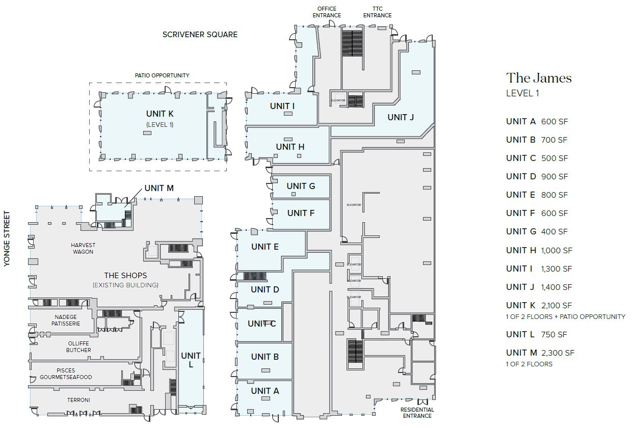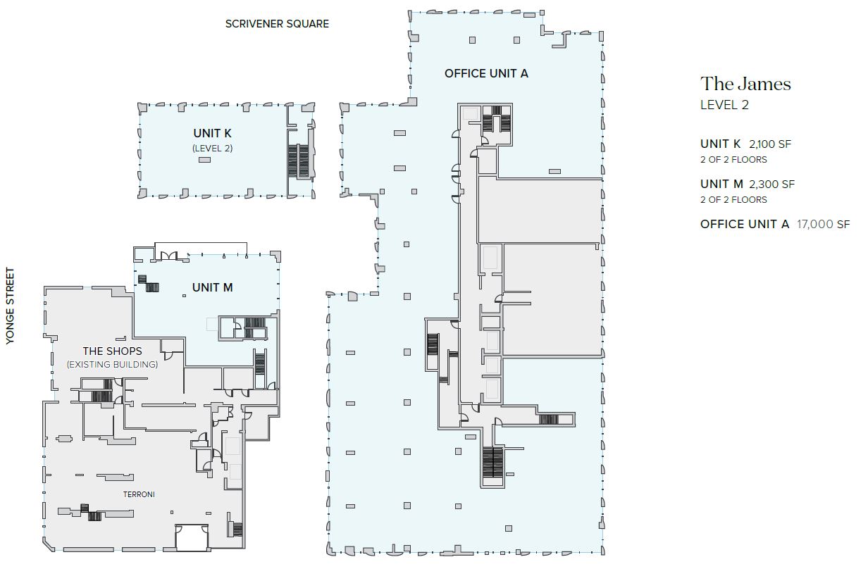 Located in the heart of Rosedale and steps from Summerhill Station, amongst charming boutique shops, restaurants, cafes, and in one of Toronto’s most affluent neighbourhoods. The James is a collection of 127 luxury rental residences that will feature 10,500 SF of boutique ground floor retail including a standalone 4,200 SF two-storey retail opportunity with a unique outdoor patio space facing the public square, and 17,200 SF of office space on the second floor. The Shops at The James offers seamless access to Summerhill Station.